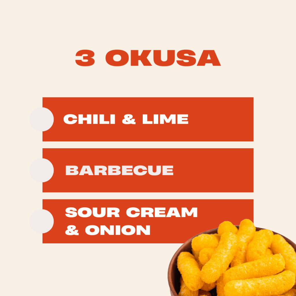 Chili & Lime, Barbecue i Sour Cream & Onion.